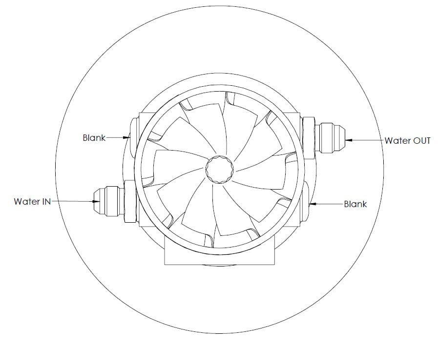 Water lines require a AN 6 style fitting to work, water lines should be taken from the cooling system, with hot water being fed into the lower to the horizontal port and fed out via the higher from the horizontal port, in an aid to promote thermal siphoning. The threads are a M14x1.5 thread. Port logic is non directional and the blanks could be swapped if the install required.