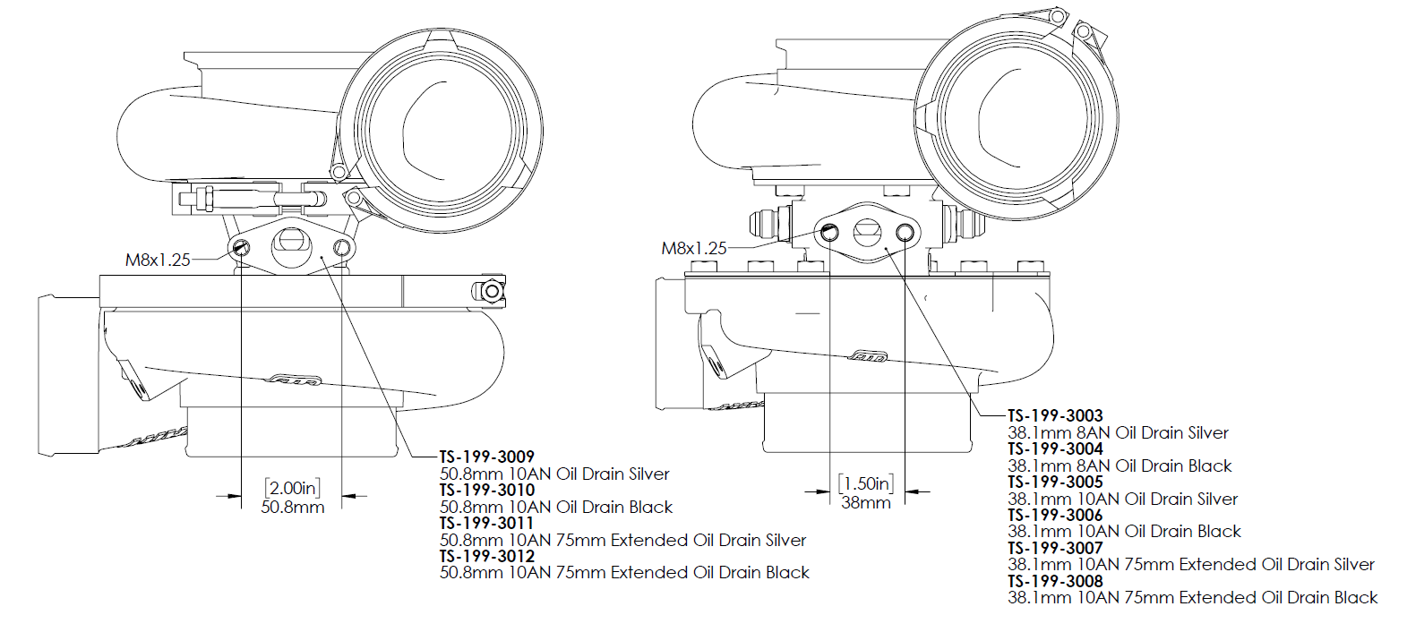 - Consult your local specialist before selecting your desired turbocharger, incorrect sizing may go beyond your engines capability and may result in engine damage.